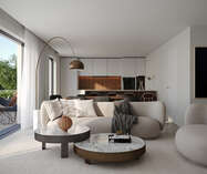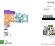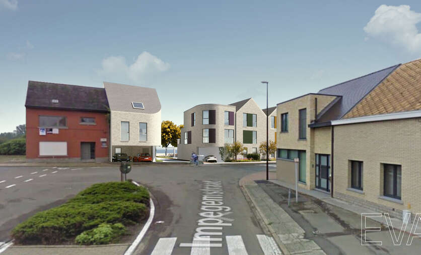 Appartement 0.4 bevindt zich uiterst rechts op het gelijkvloers van het 4-gevel gebouw. Dit appartement beschikt over een inkomhal met toilet, 2 slaapkamers, badkamer met aansluitend 2de toilet, een ruime leefruimte met open keuken en aangrenzende berging. De leefruimte geeft uit op een ruim terras.