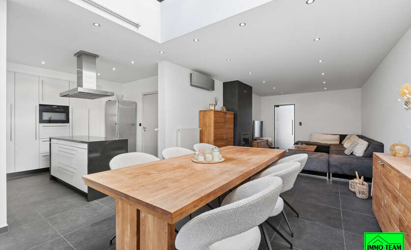 Instapklare, energiezuinige gezinswoning in het hart van Liedekerke, op wandelafstand van winkels, scholen, openbaar vervoer en alle andere dagelijkse voorzieningen. Via de inkomhal met gastentoilet komt u in de lichtrijke en aangename leefruimte met gezellige zithoek en ruime eetkamer. De volledig geïnstalleerde open keuken sluit hier naadloos op aan en vormt samen met de leefruimte een mooie, open leefomgeving. De leefruimte geeft rechtstreeks uit op het ruime overdekte terras en de verzorgde tuin, ideaal om in alle rust te genieten van het buitenleven. Achteraan bevindt zich bovendien een praktische buitenberging. De woning beschikt daarnaast over een inpandige garage en een extra berging, wat zorgt voor voldoende opslagruimte en extra comfort. Op het eerste verdiep bevinden zich twee ruime en volwaardige slaapkamers en een bijzonder luxueuze badkamer uitgerust met zowel een comfortabel zitbad als een aparte douche. Het tweede verdiep werd volledig ingericht als een ruime derde slaapkamer. De woning geniet van een kwalitatieve afwerking met hoogwaardige materialen, combineert ruimte, comfort en een centrale ligging en is bovendien energiezuinig met een EPC-score B. Interesse? Contacteer ons via 0478/05 90 69 of info@immoteam.be en schrijf in voor onze eerste bezoekdag op zaterdag 21/03.